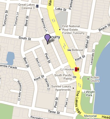 is located at 4 South Street Tuncurry, just beind the Tuncurry Post Office.